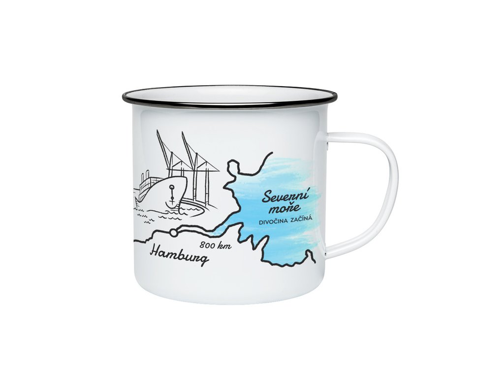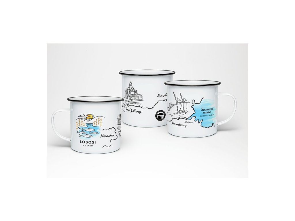 Neobyčejný plecháček s duší dobrodruha. Kromě vůně kávy na vás dýchne atmosféra divoké přírody. Zdobí ho černý lem a motiv úžasné pouti lososů z Českého Švýcarska do Severního moře a zase zpět.
